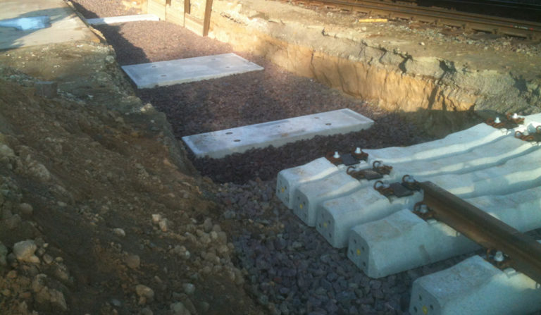 Der zügige Einbau erfolgt mit kleinen Kränen oder Gleisbaubaggern.